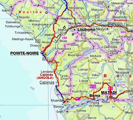 Auf guter Asphaltstraße kommen wir nach Cabinda (Stadt), treiben uns auf dem Markt herum und schlafen wieder in der Mission bis wir am nächsten Tag schon wieder auf Asphalt an der Grenze in Yema stehen. Cabinda ist klein! Ausreise kein Problem. (S 5°44.435', O 12°17.722')