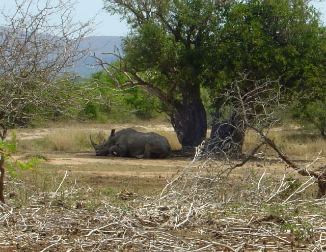 Unspektakulär drehen wir unsere Runde durch SWAZILAND. Ackerflächen wechseln ab mit hügeliger Baumsavanne und wir besuchen wieder mal einen Nationalpark. Im 'Hluhluwe Umfolozi Park' (Eintritt 70R/P) leben 50% der Weltpopulation von Rhinos und da ist die Wahrscheinlichkeit sehr groß, das wir auch eines zu Gesicht bekommen werden. Wir verbringen den ganzen Tag im Park und sehen wirklich viele Tiere. Giraffen, Impalas, Zebras, Gnus und dann tatsächlich auch noch ein großes Nashorn. Solche Tage gehören zu den absoluten Highlights!