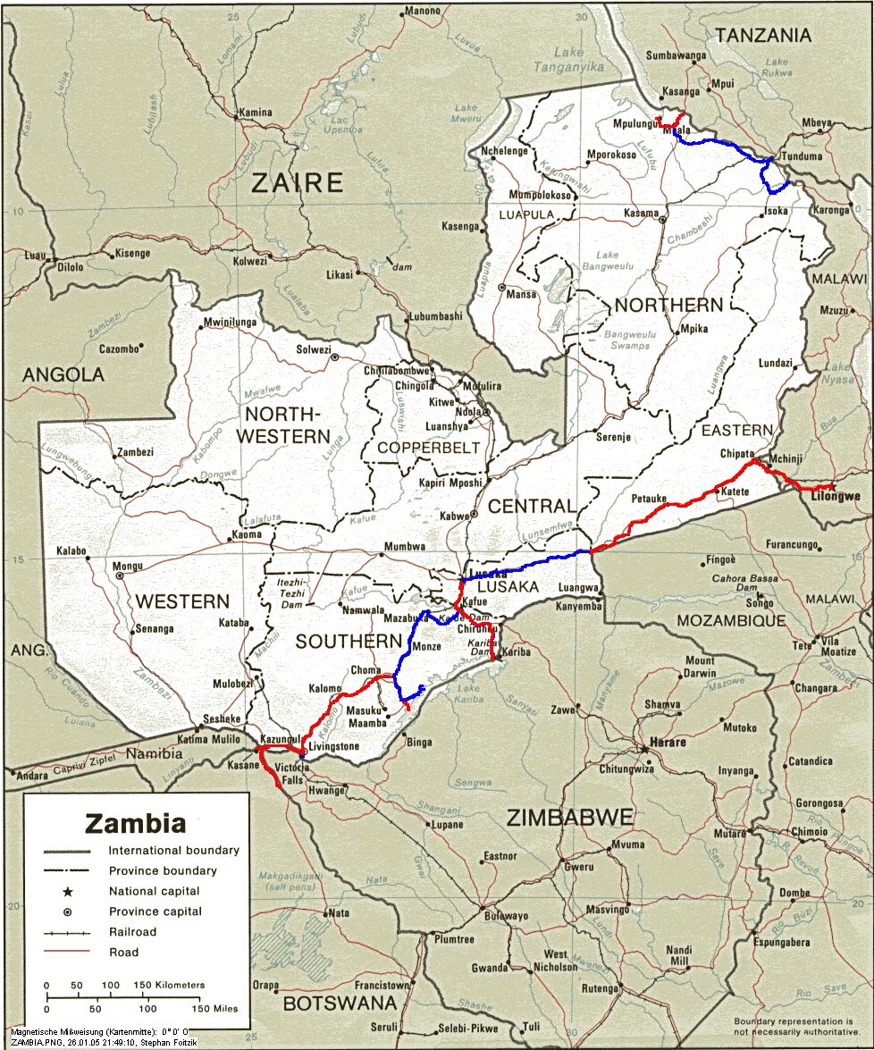 Wir kommen nach Lusaka, der Hauptstadt von ZAMBIA. Hier können wir mit Freude in der Deutschen Botschaft (S 15°25.366', O 28°18.725') unser neues Carnet in Empfang nehmen. Überhaupt ist der Empfang in der Botschaft sehr herzlich. Wir werden zum Tee eingeladen, sollen unsere Reisegeschichte erzählen und bekommen ein paar nützliche Adressen für die Weiterreise. Whow, so nett haben wir die Botschaftsangehörigen selten auf unserer Tour erlebt.